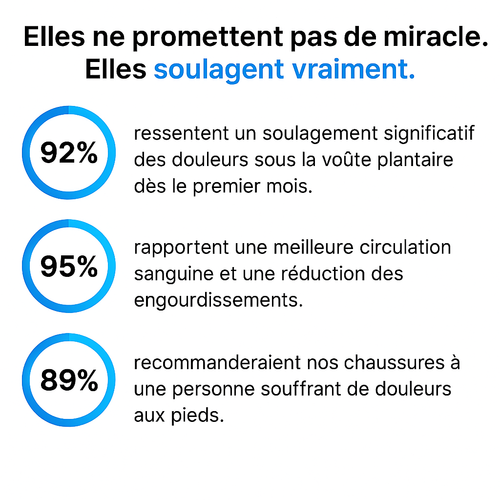 Ressentent un soulagement significatif des douleurs sous la voûte plantaire dès le premier mois.