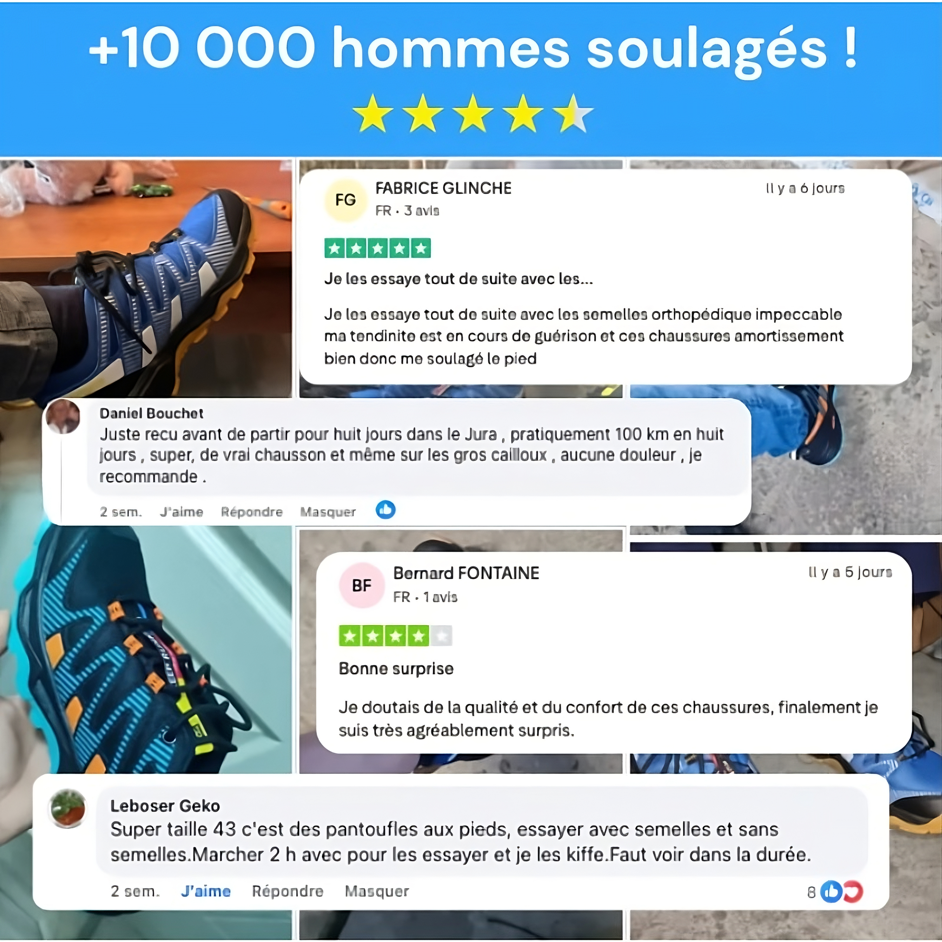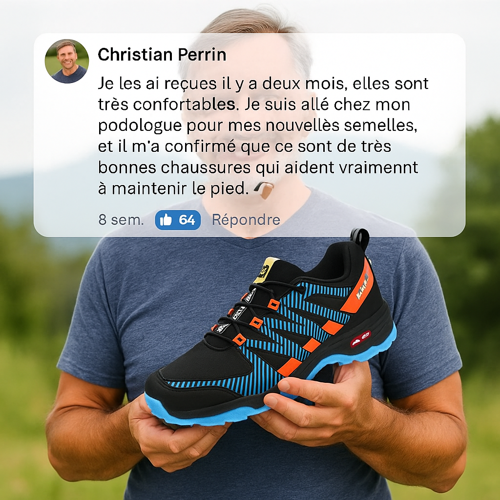 Trop rigides. Trop lourdes. Trop raides.Les chaussures classiques fatigues vos articulations au lieu de les soulager.Les ORTHOTRAILPRO™, elles absorbent les chocs et accompagnent le mouvement naturel du pieds, même sur sentiers caillouteux.